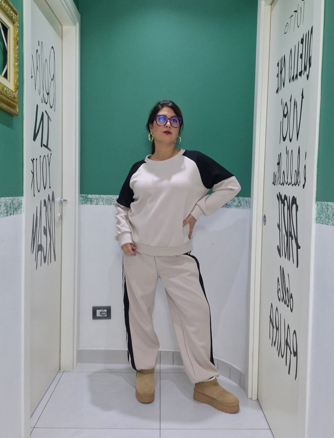 Seno 136cm fianchi 120cm (estensione massima tessuto teso)lunghezza 64cmPantalone: elastico in vita 126cm fianchi 144cm (estensione massima tessuto teso)Lunghezza 98cm