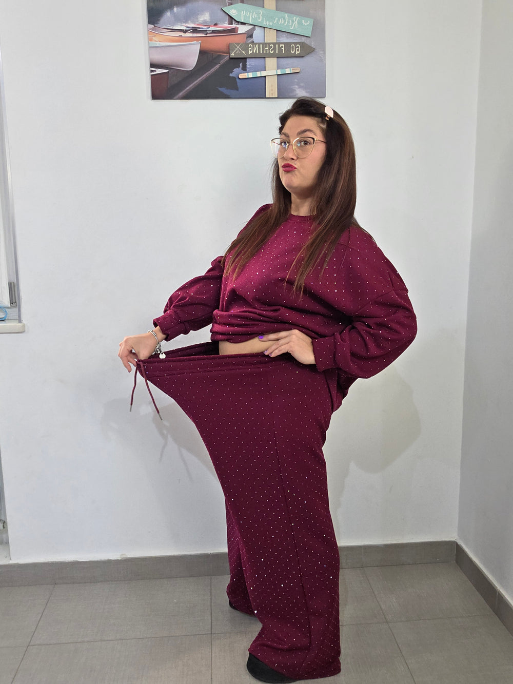 Maglia: seno 150cm fianchi 150cm (estensione massima tessuto teso)Lunghezza 75cmPantalone: elastico in vita 150cm fianchi 180cm (estensione...
