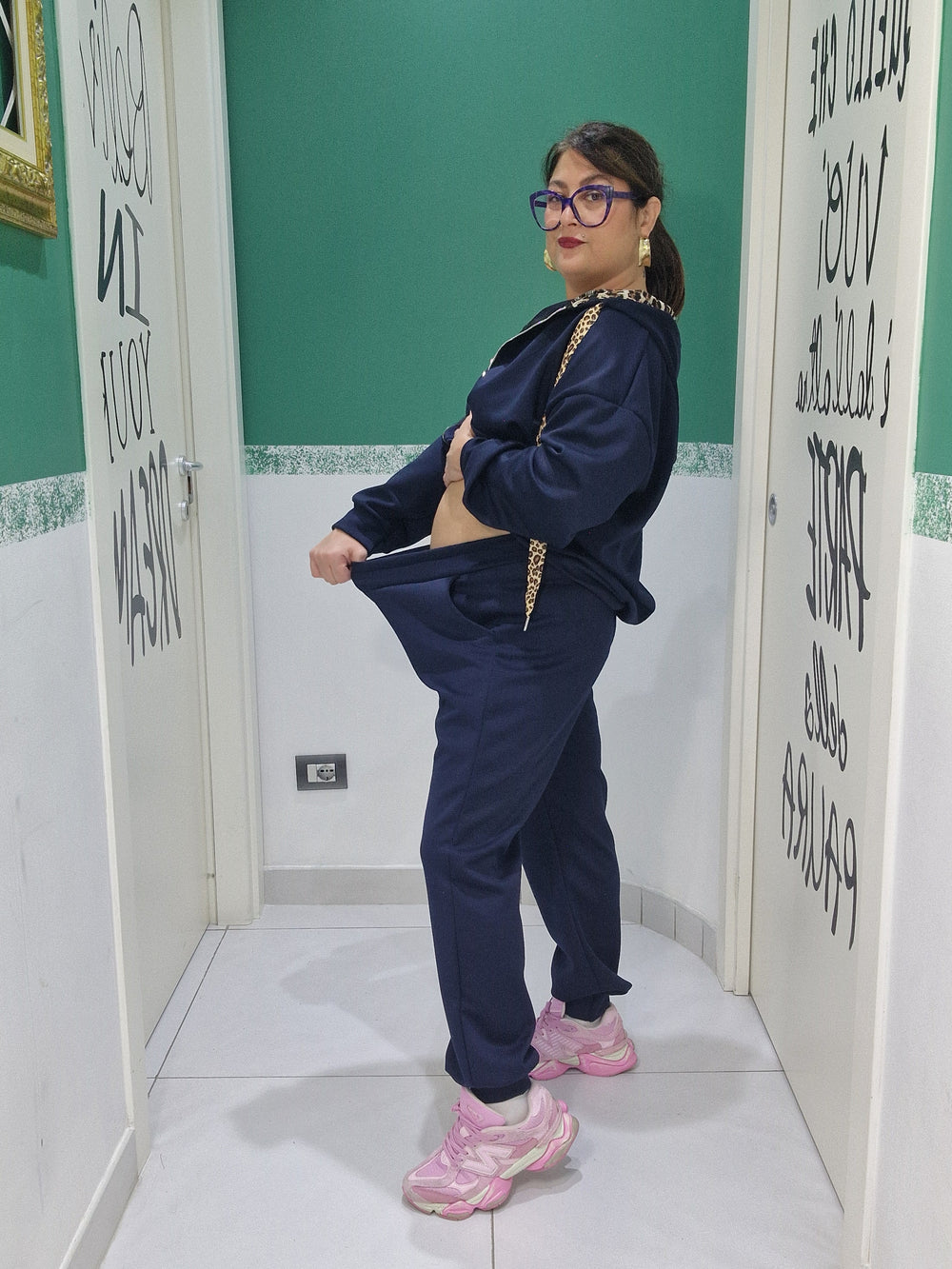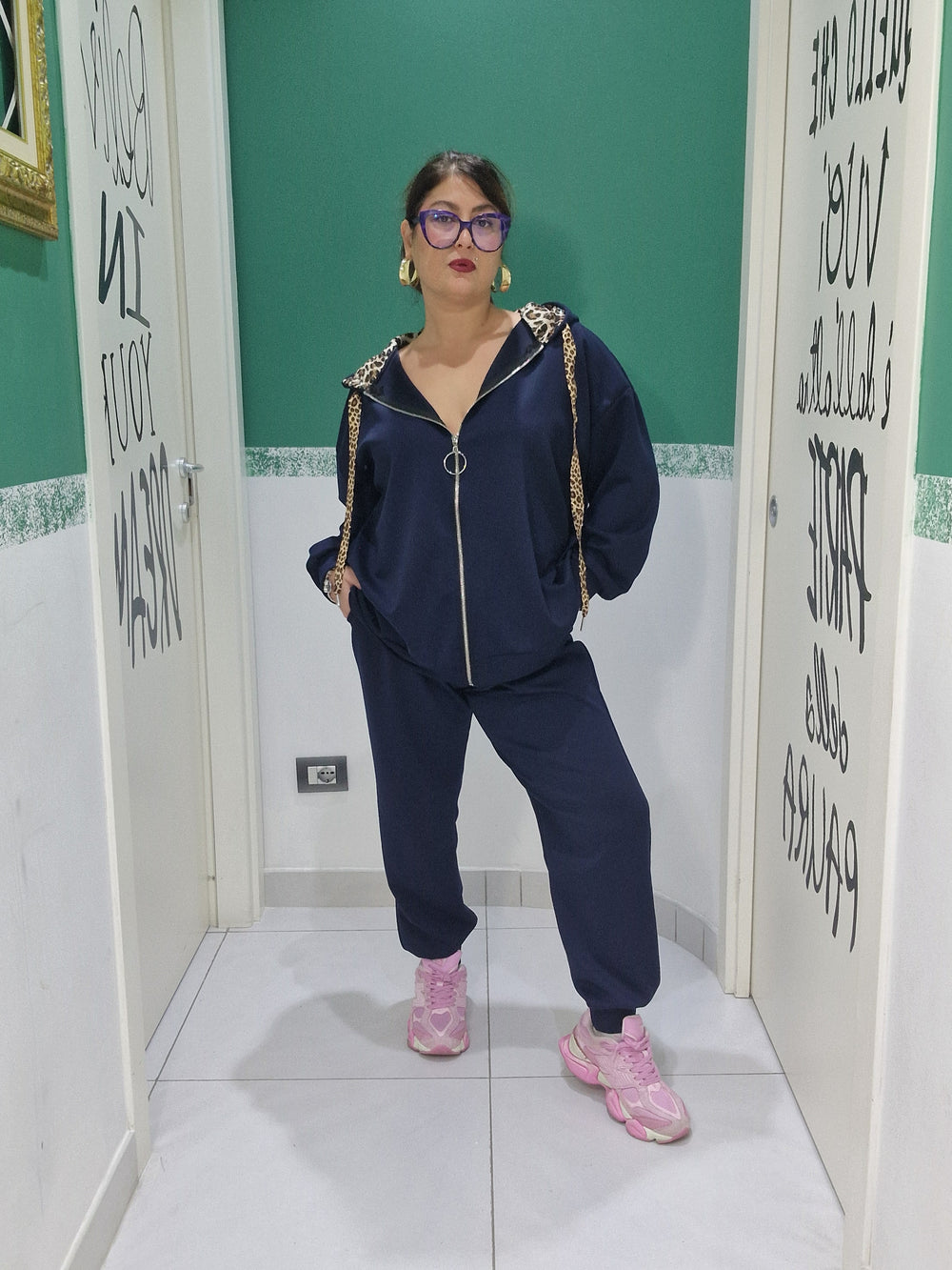 Felpa: seno 150cm fianchi 150cm (estensione massima tessuto teso)Lunghezza 75cmPantalone: elastico in vita 140cm fianchi 150cm (estensione...