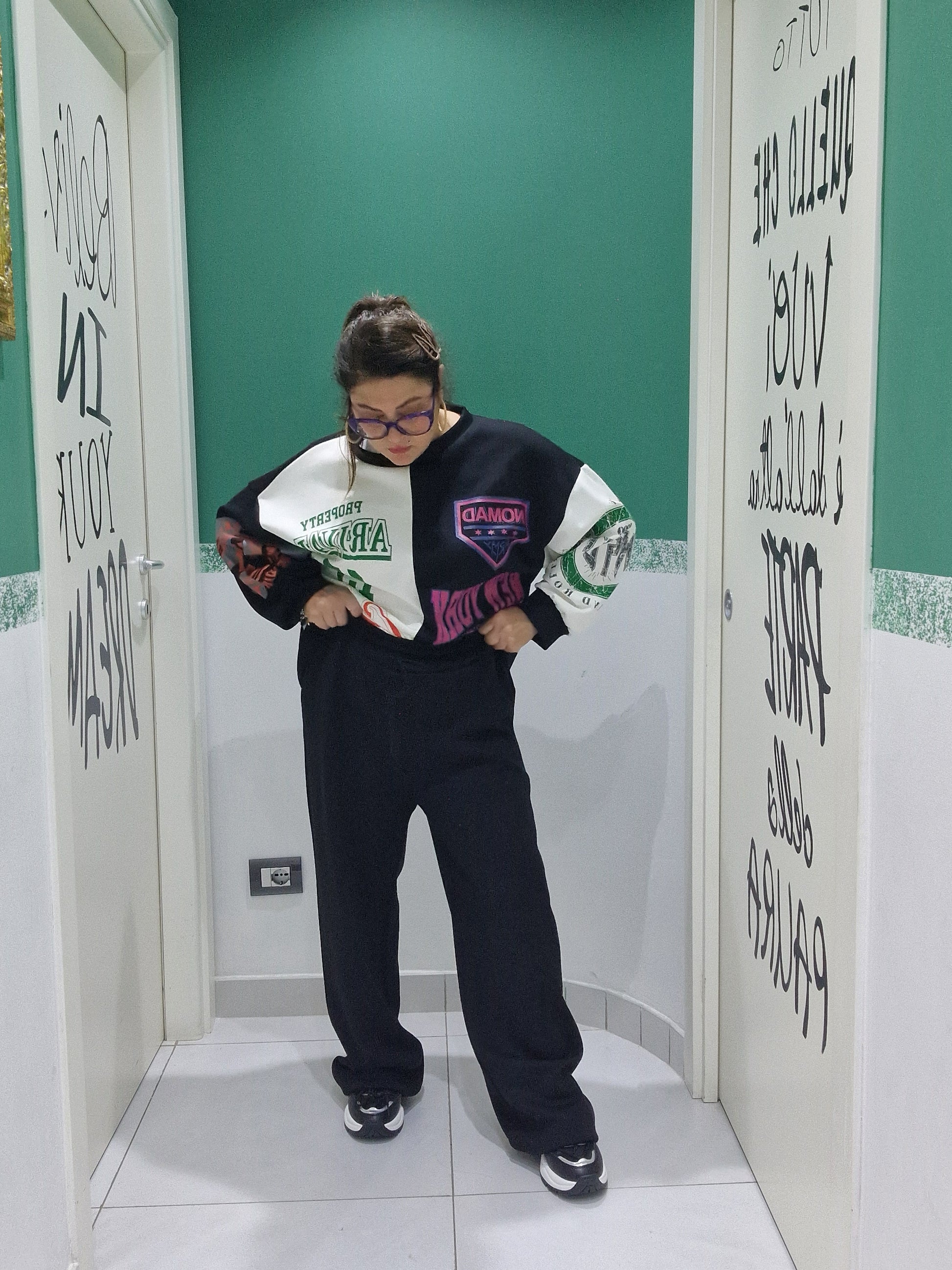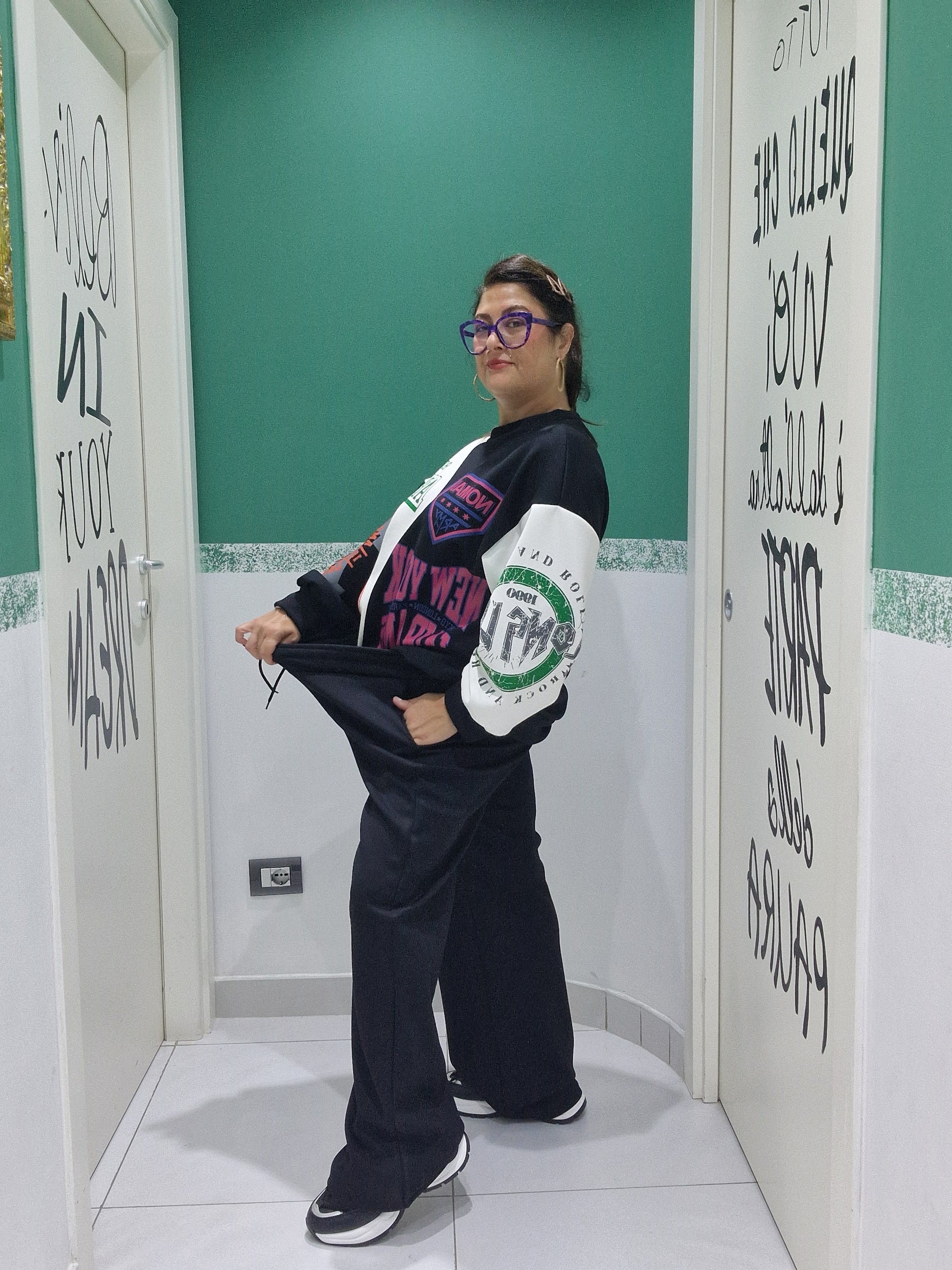 Pantalone: elastico in vita 140cm fianchi 140cm (massima estensione tessuto teso) Lunghezza 109