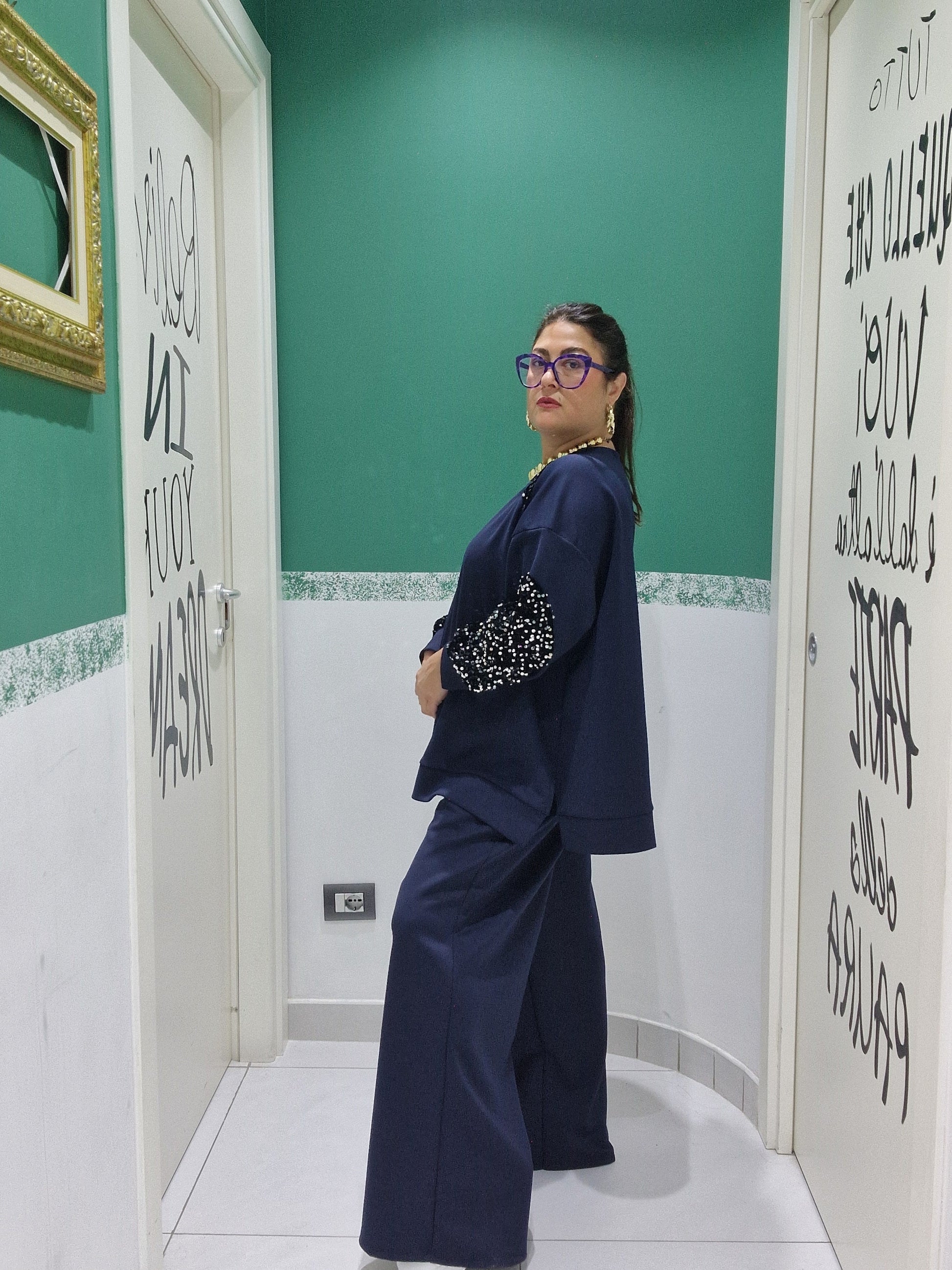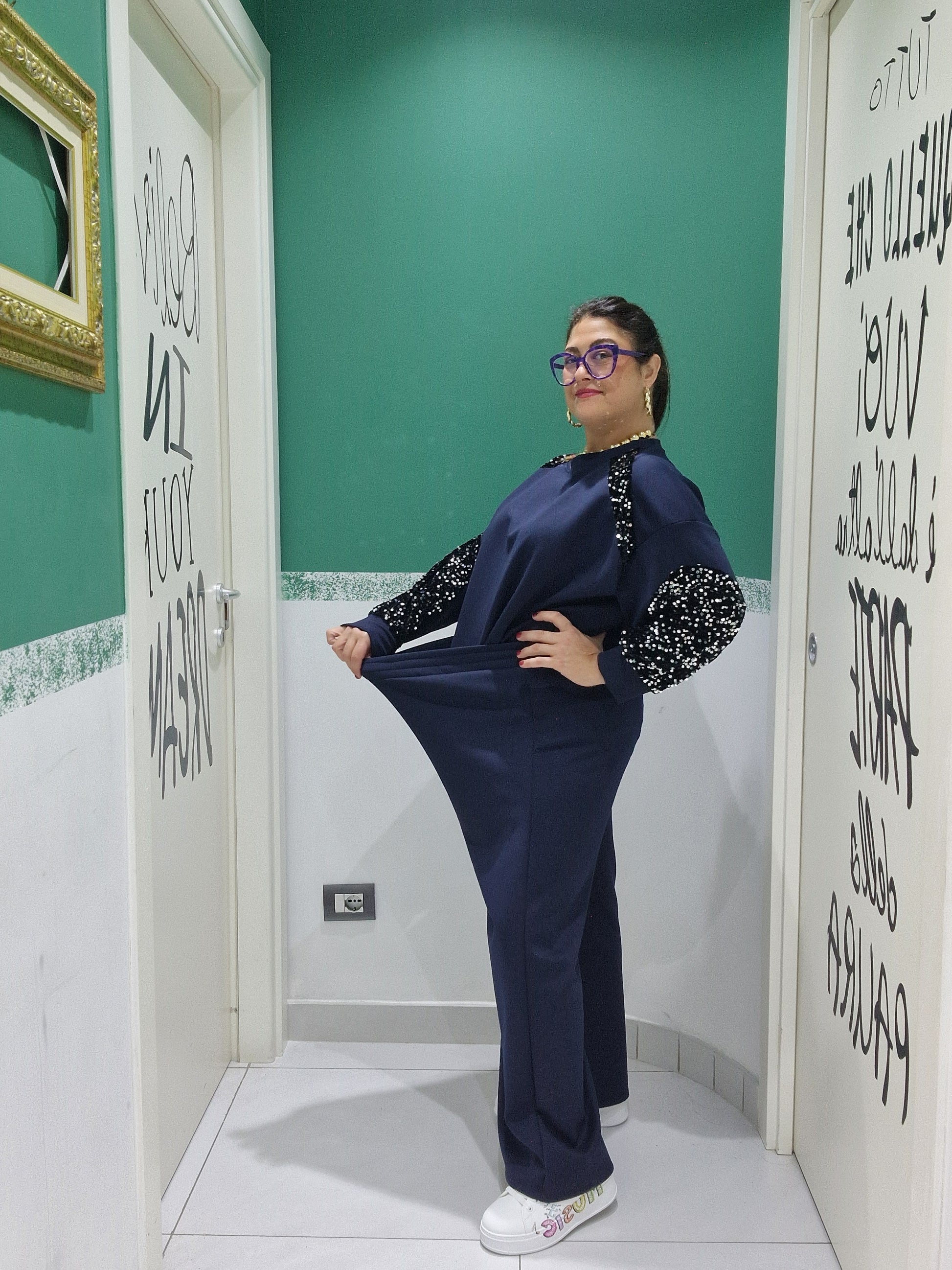 Pantalone: elastico in vita 132cm fianchi 142cm (estensione massima tessuto teso) Lunghezza 101cm