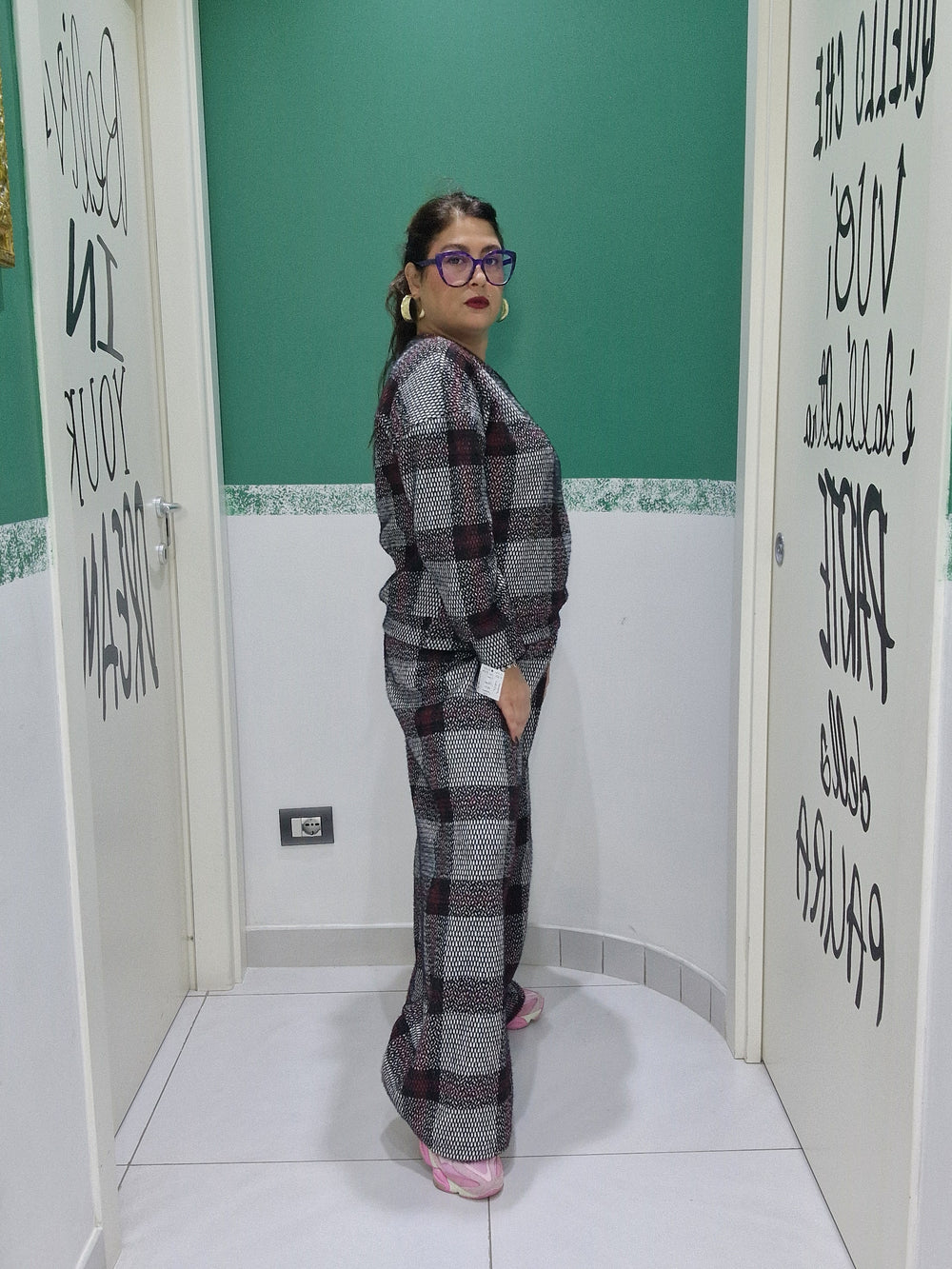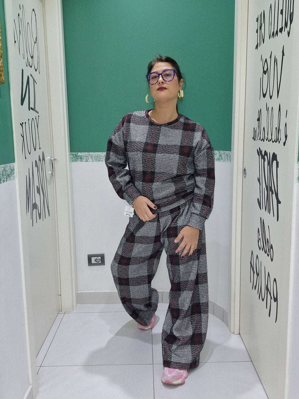 Maglia: seno 118cm fianchi 110cm (estensione massima tessuto teso)Lunghezza 63cmPantalone: elastico in 126cm fianchi 150cm (estensione massima...