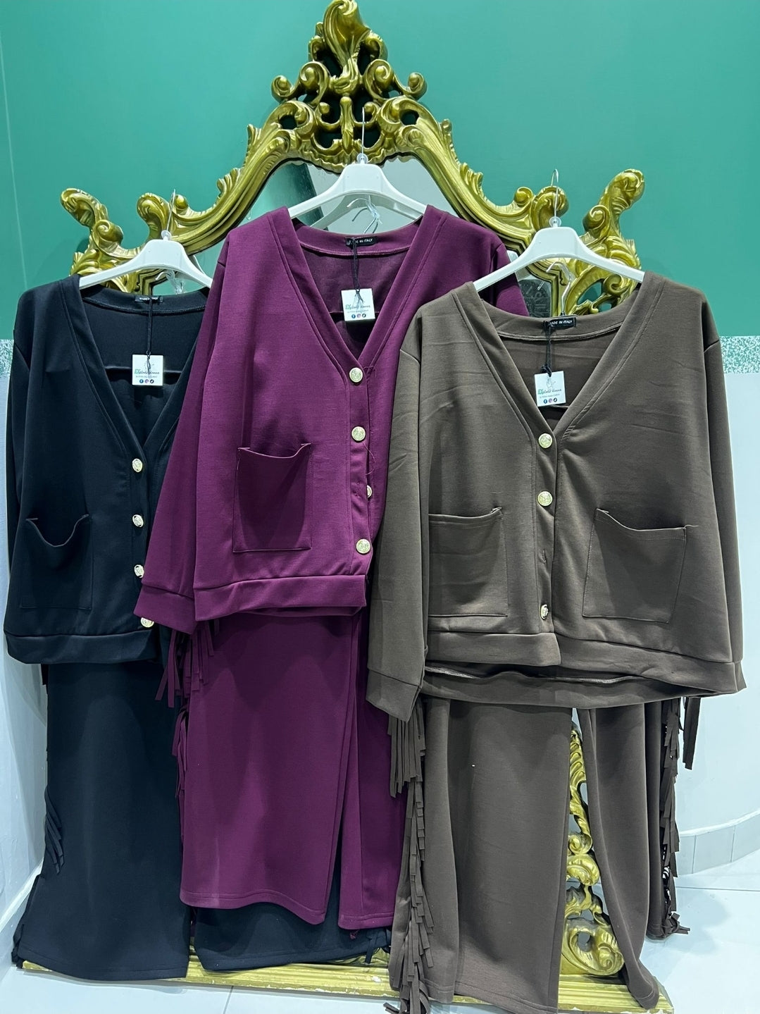 Cardigan: seno 132cm fianchi 146cm (estensione massima tessutoLunghezza 69cmPantalone: seno 130cm fianchi 140cm (massima estensione tessuto teso)Lunghezza 110cm