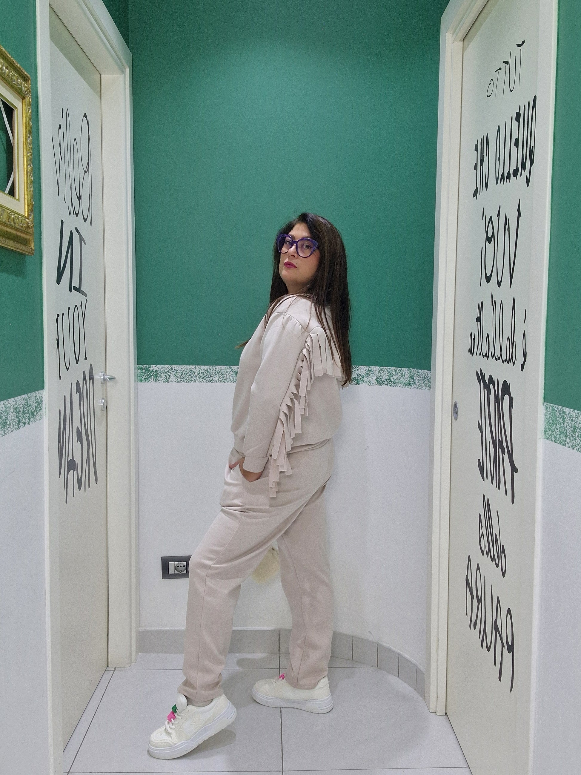 Pantalone: elastico in vita 118cm fianchi 130cm (estensione massima tessuto teso) Lunghezza 95cm