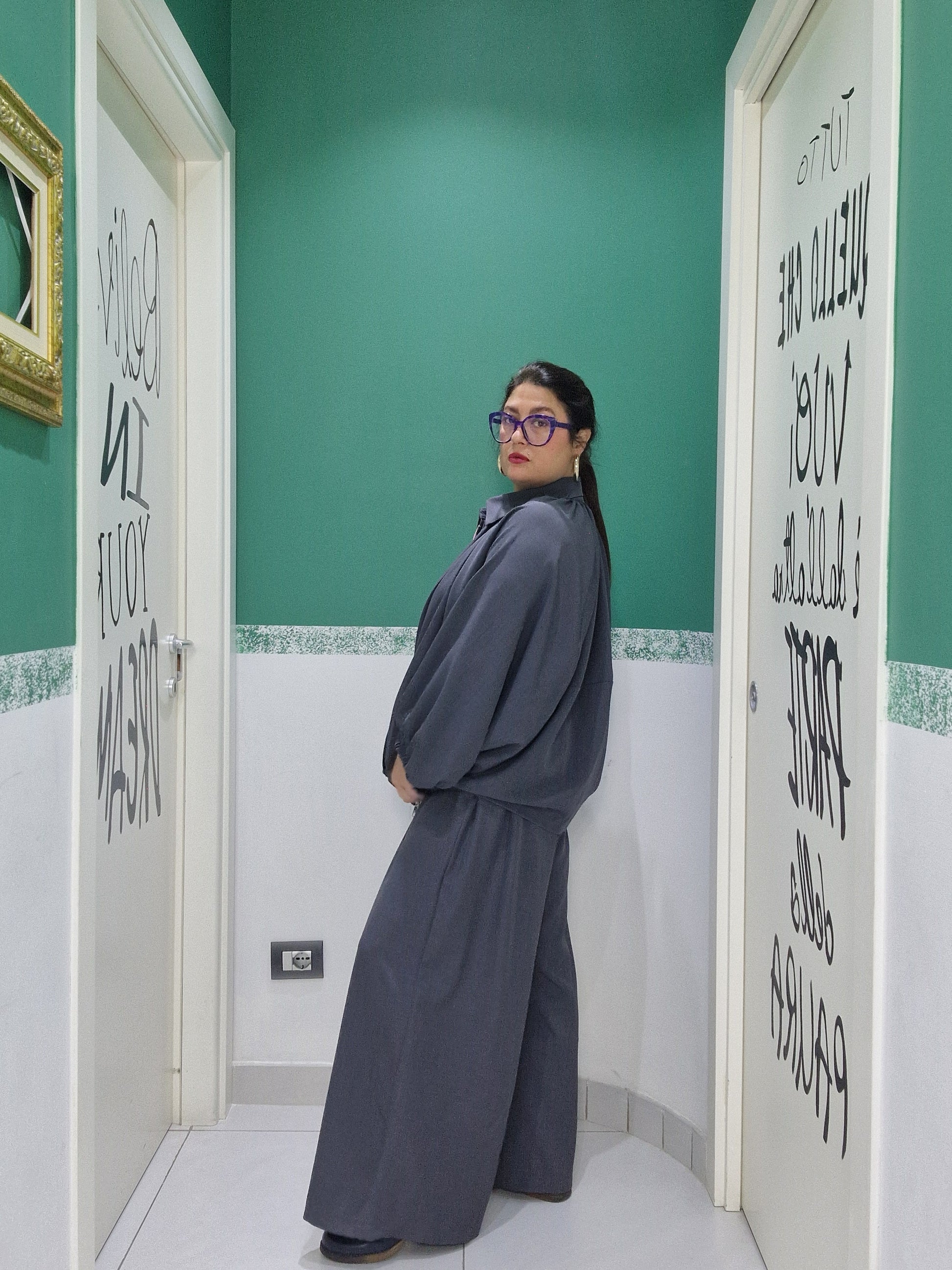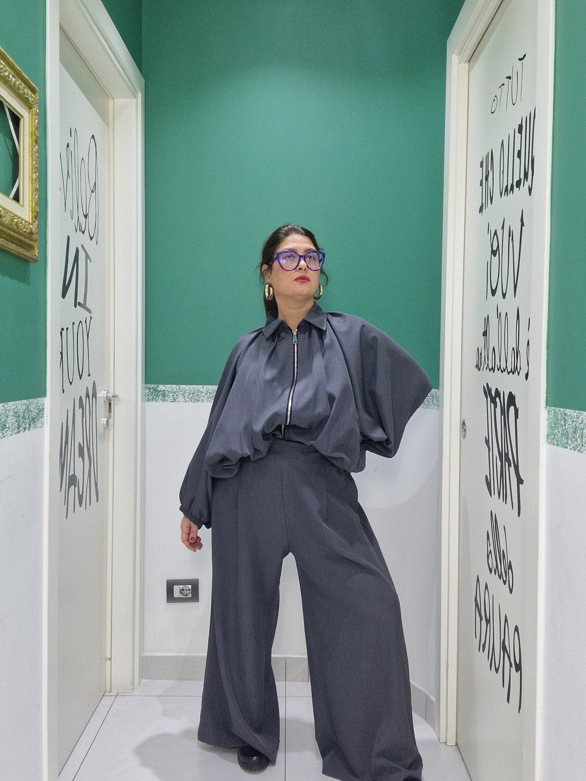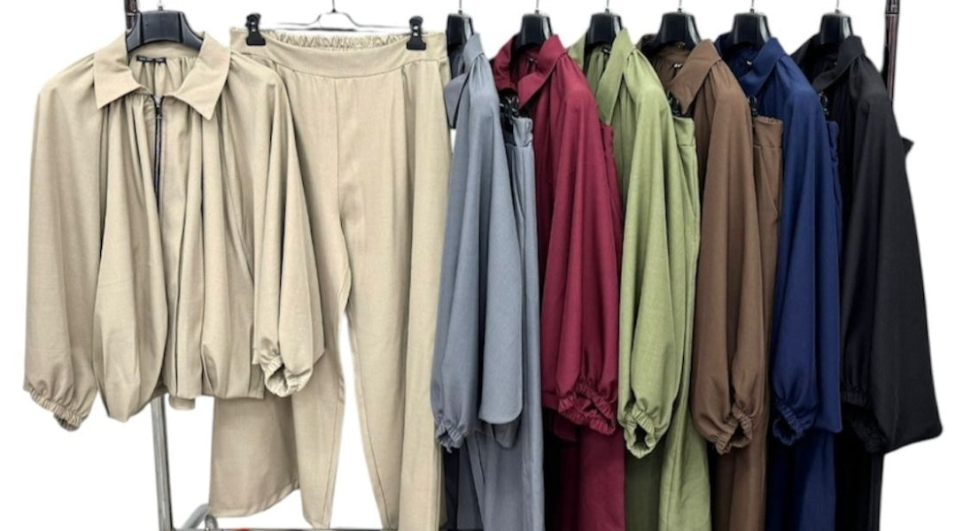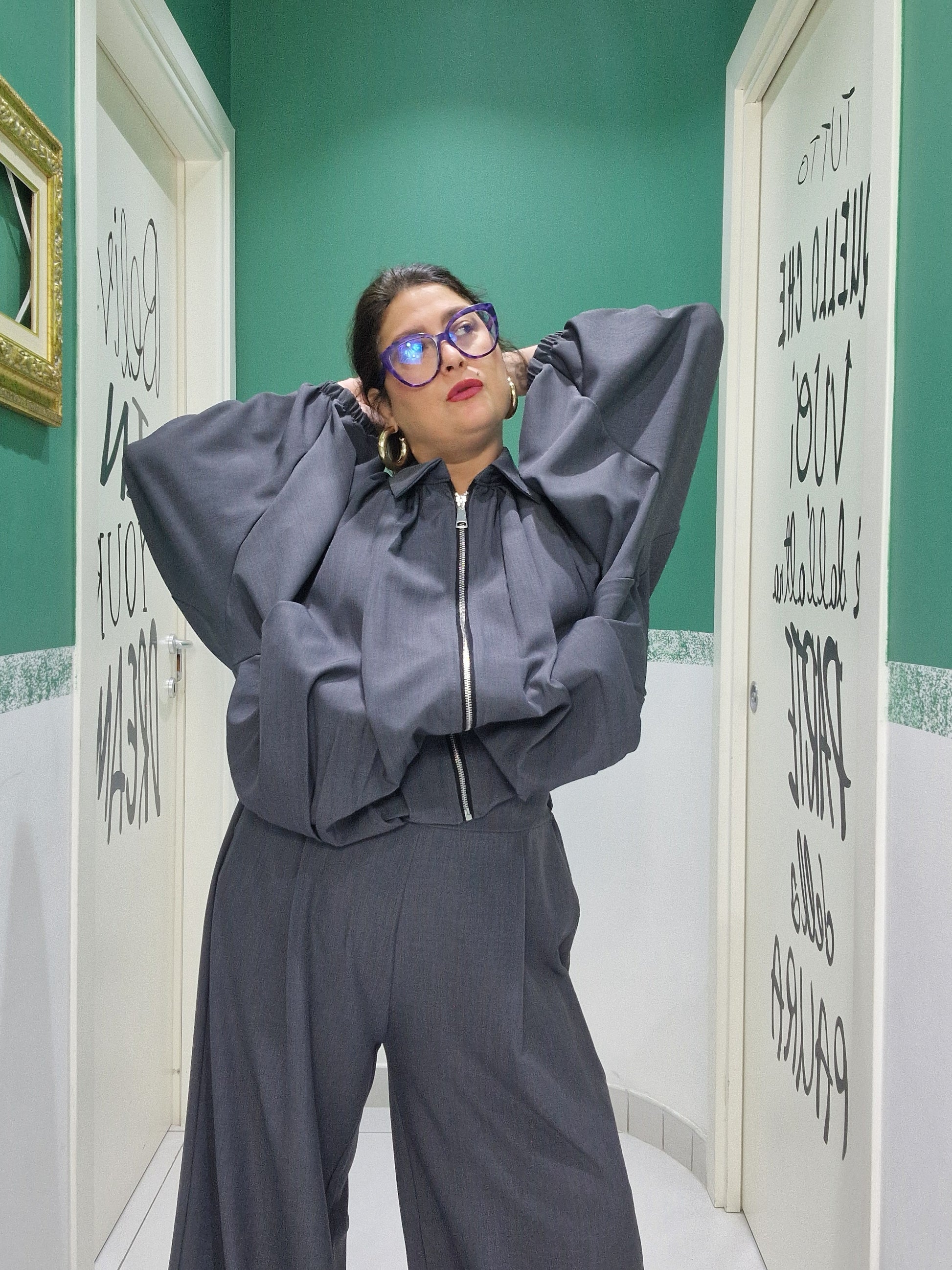 Giubbino: seno 170cm fianchi 130cm (estensione massima tessuto teso)Lunghezza 68cmPantalone: elastico in vita 122cm fianchi 154cm (estensione massima tessuto teso)lunghezza 102cm